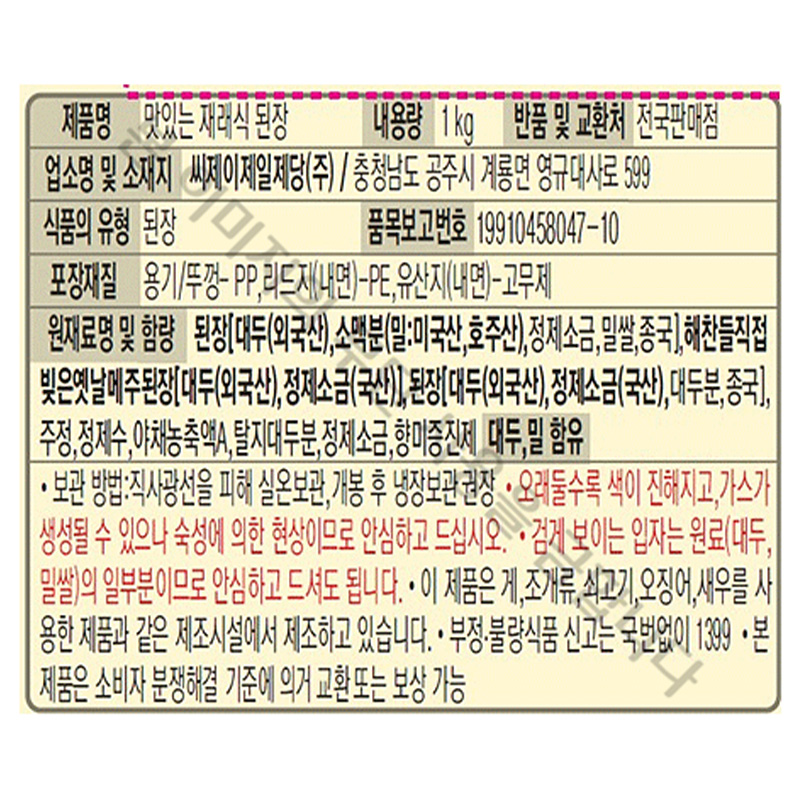 해찬들 재래된장(1Kg/EA)