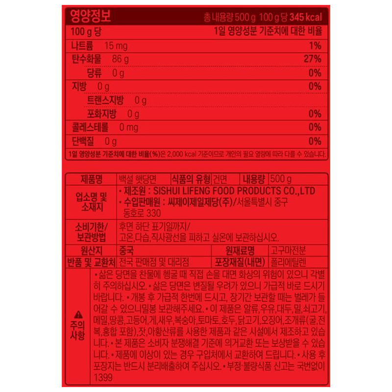 백설 햇당면(2017년리뉴얼_자른것 500g/EA) 이미지