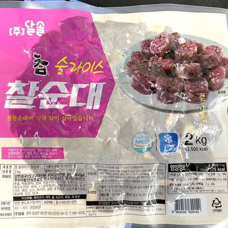 ★초특가★ 달솔 찰순대(슬라이스 2Kg/EA) 이미지