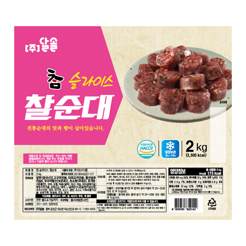 ★초특가★ 달솔 찰순대(슬라이스 2Kg/EA)