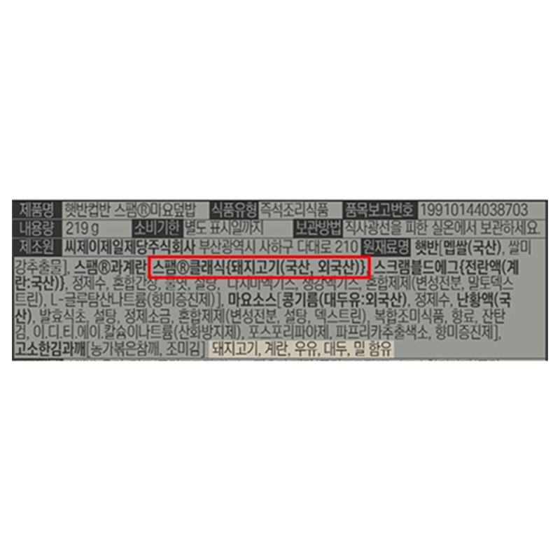 원재료명 및 함량