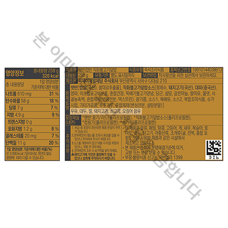 햇반 컵반(직화불고기덮밥_NEW 258g/EA) 즉석밥 컵밥 이미지