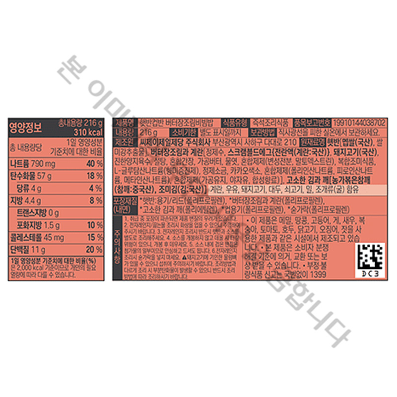 햇반 컵반(버터장조림비빔밥_NEW 216g/EA) 즉석밥 컵밥 이미지