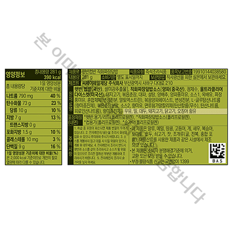 햇반 컵반(직화볶음짜장덮밥_NEW 281g/EA) 즉석밥 컵밥 이미지