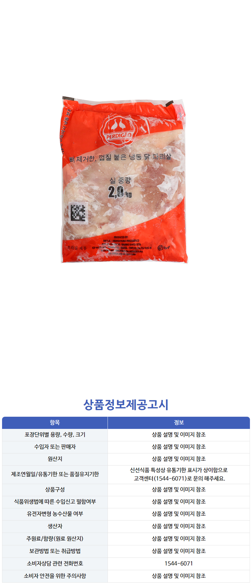★첫구매★[교차출고] 닭정육(닭다리살/브라질/냉동) 2kg 이미지
