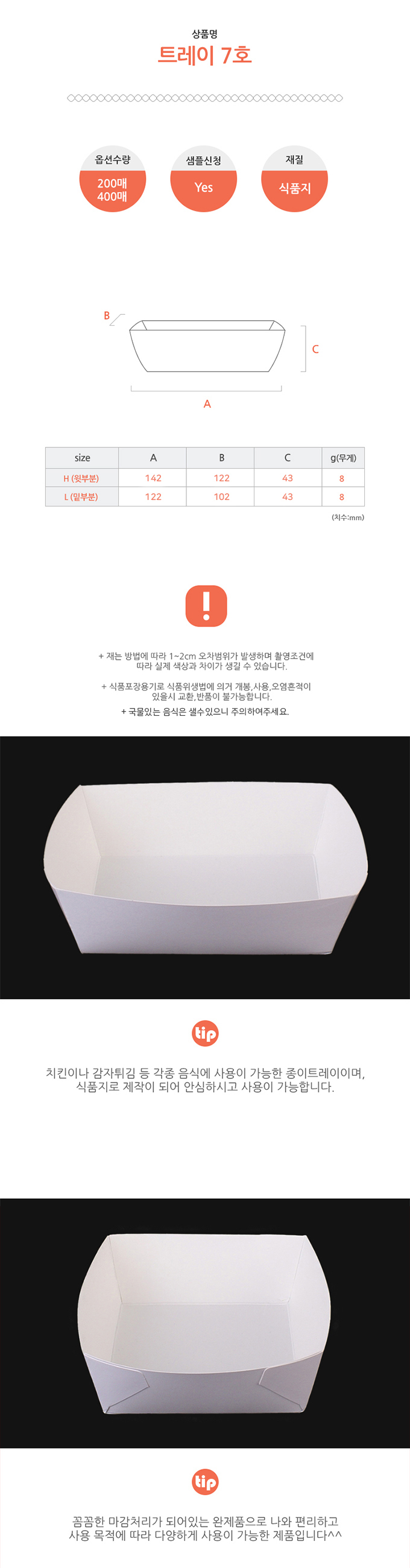 치킨 종이 속지 트레이 7호 200매 (142*122*43)
