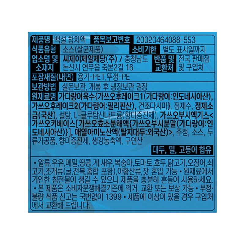 백설 참치액(1.8L 참치액젓 2.142Kg/EA) 이미지