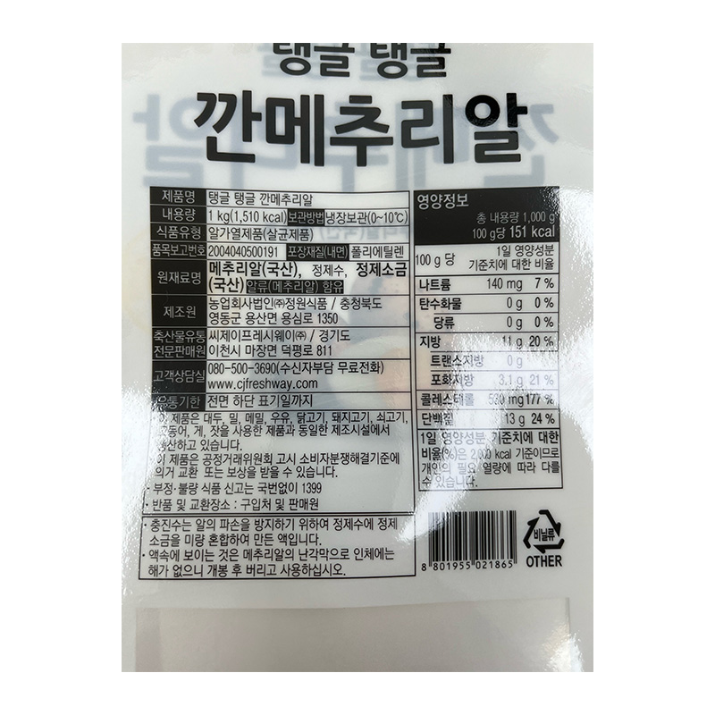 프레시원 깐메추리알(무항생제_원란 1Kg/EA) 이미지