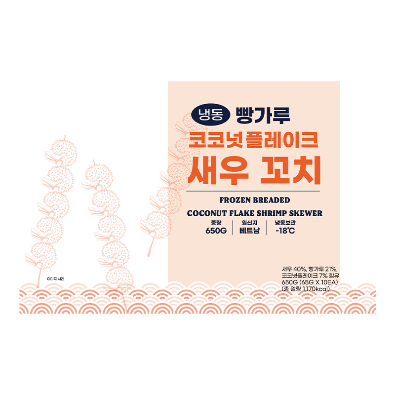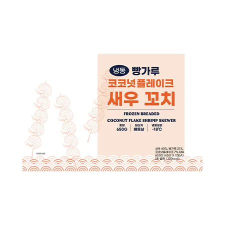 에이치푸드서플라이 냉동빵가루코코넛플레이크새우꼬치(비유탕_5마리_65g*10입 650g/EA)