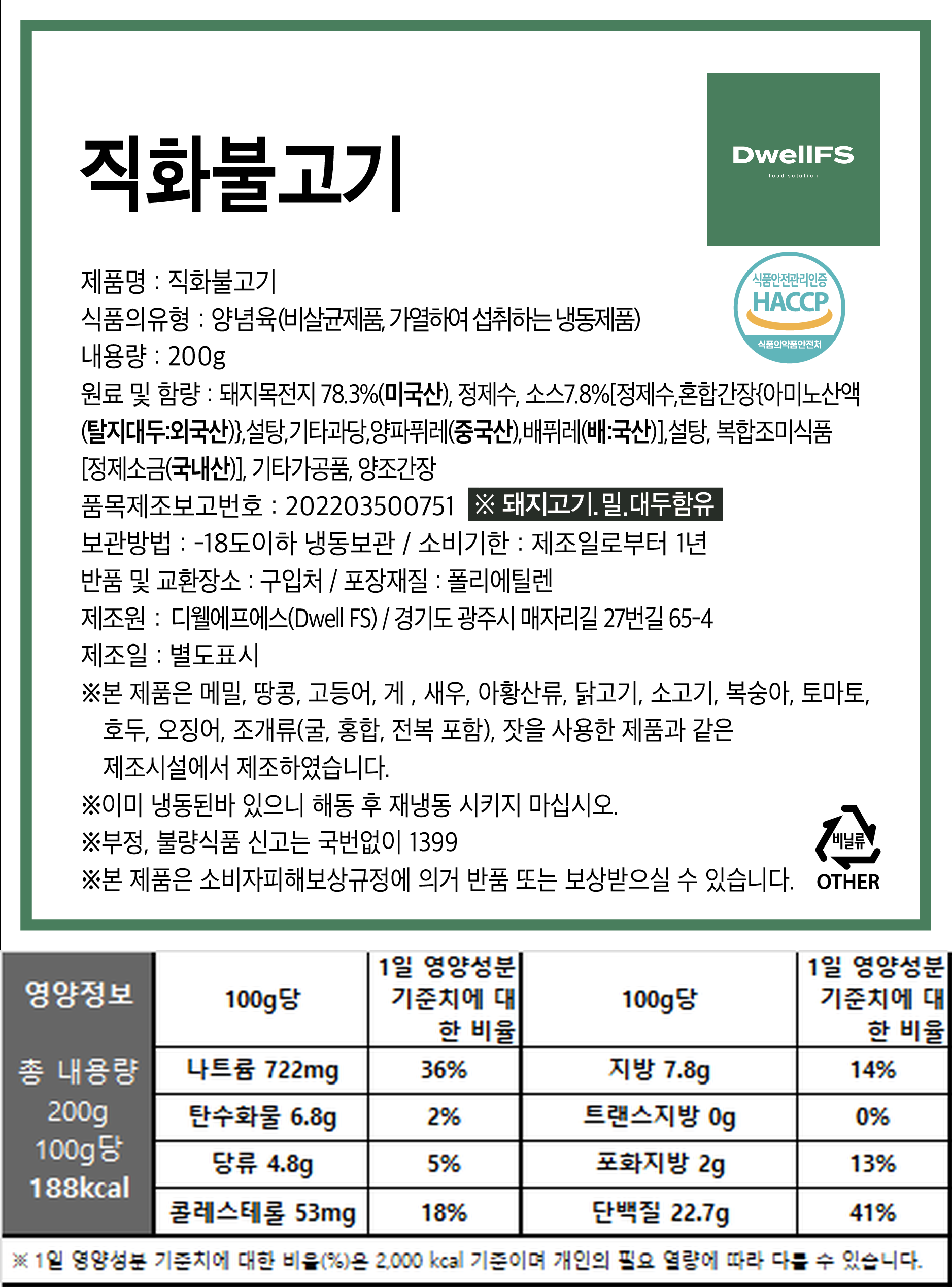 직화간장불고기 (가열) 200g /EA 안주 밀키트 야식 불맛 술집 주점 맛집 이미지
