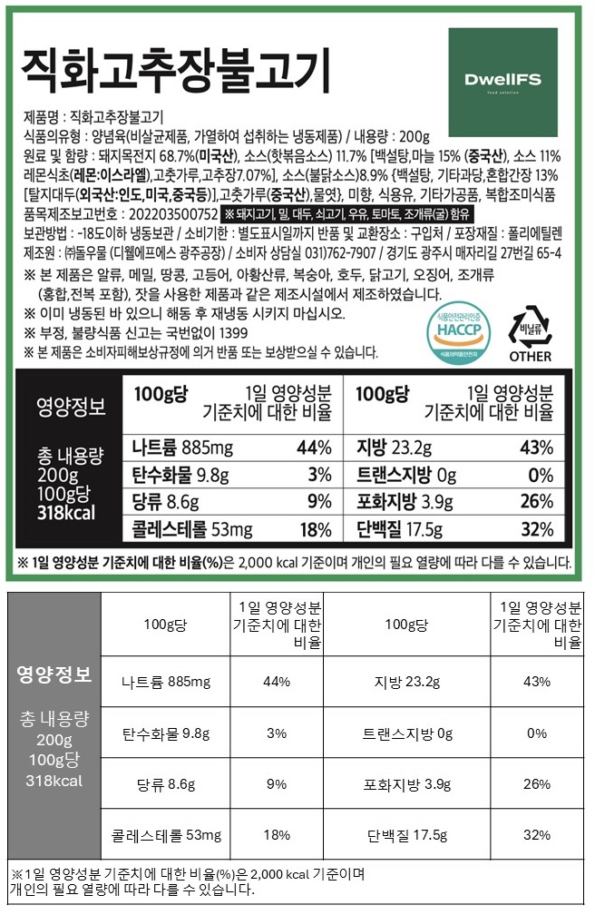 직화고추장불고기 (가열) 200g / EA 안주 밀키트 야식 불맛 술집 주점 맛집