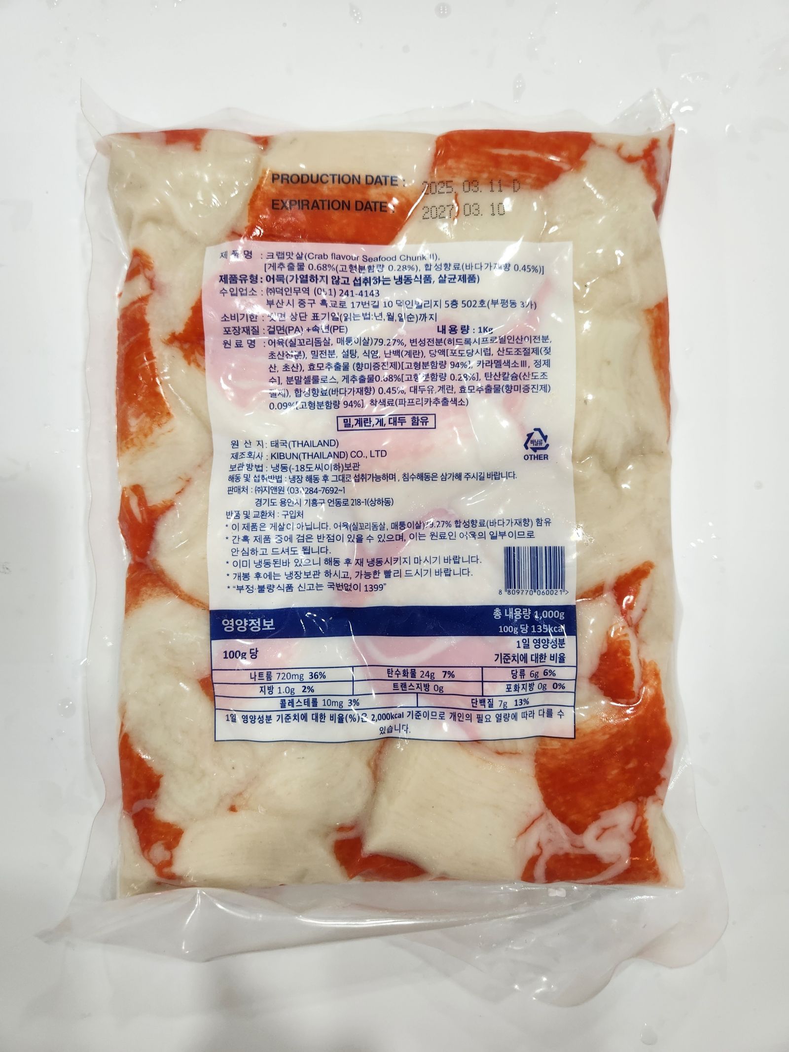 초밥용 크랩맛살 1kg 1팩