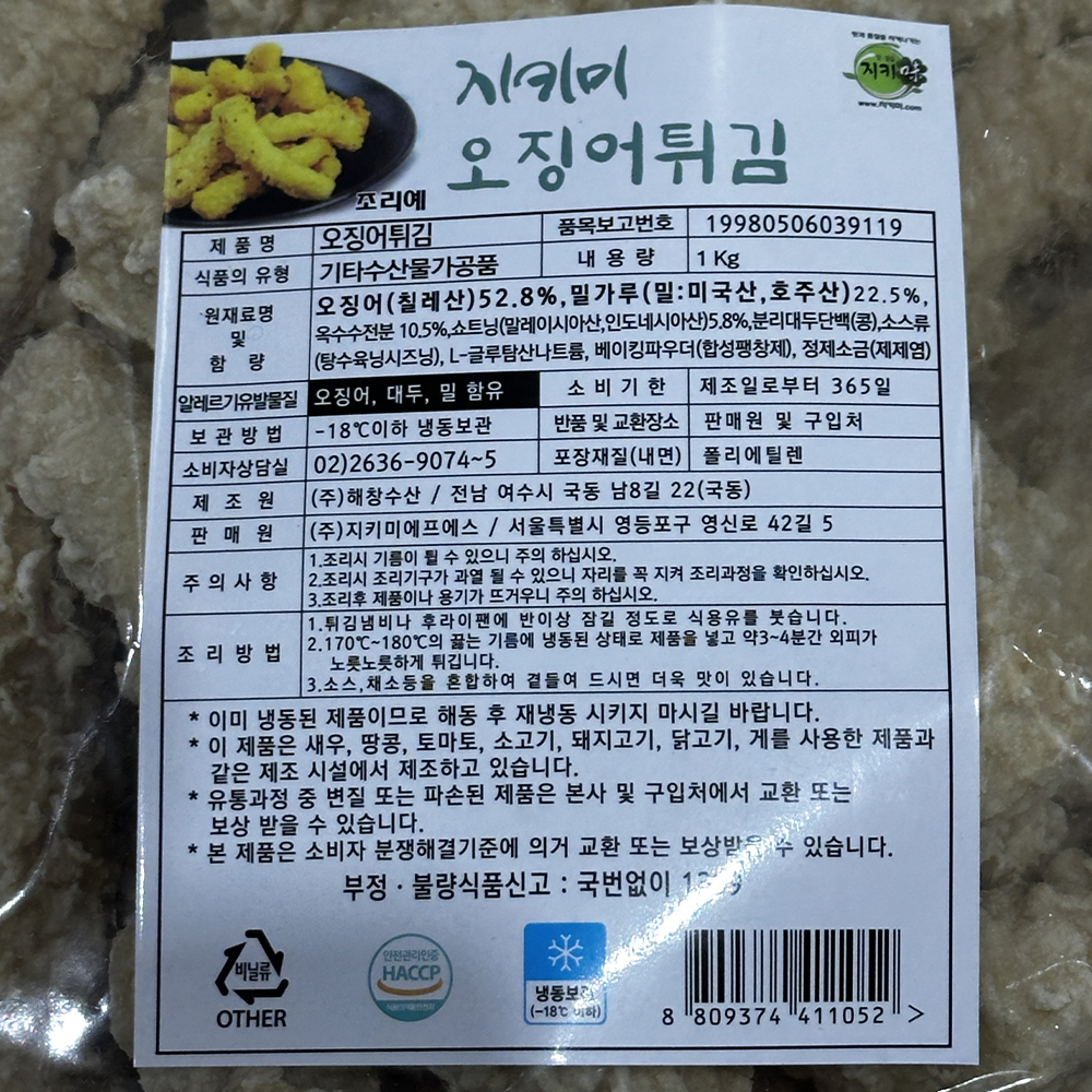 ❤️초특가❤️지키미 오징어튀김 1kg 냉동