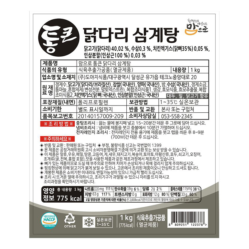 맘으로 통큰닭다리삼계탕(1Kg/EA)