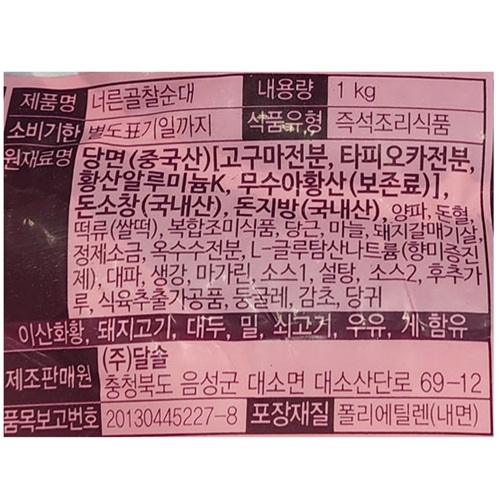 ★초특가★ 달솔 너른골찰순대(통 1Kg/EA)
