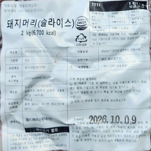 ★초특가★ 달솔 돼지머리(슬라이스 2Kg/EA) 머릿고기 머리고기 대용량 업소용 국밥용