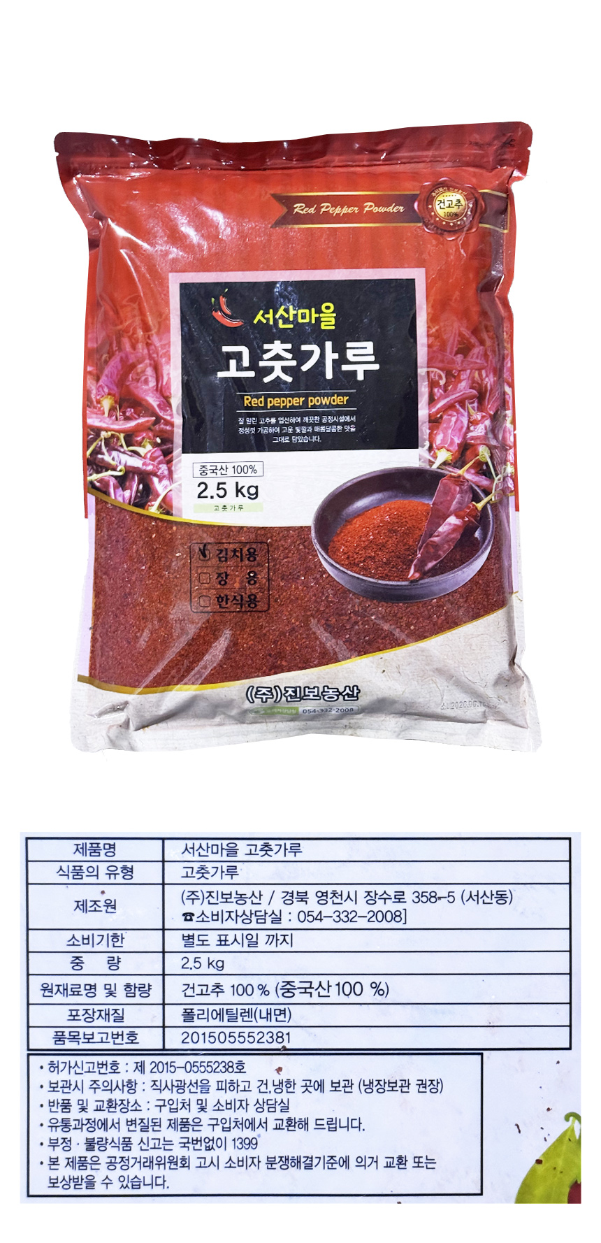 ★한정수량 초특가★ 서산마을 고춧가루2.5kg (김치용) 중국산 고추가루 김장김치 [유통기한 : 26년 06월 16일](제한)