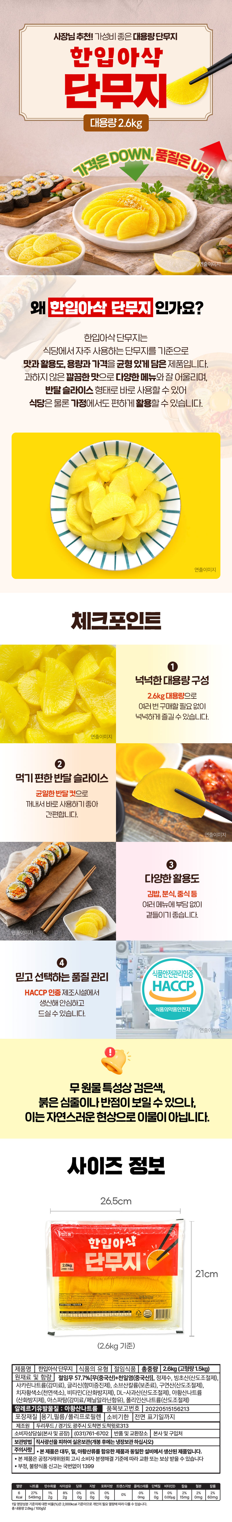★초특가★ 한입아삭 단무지(반달 2.6Kg/EA) 업소용 대용량 반달 단무지