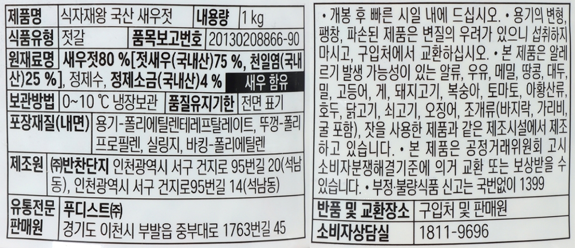 식자재왕 국산 새우젓 1kg