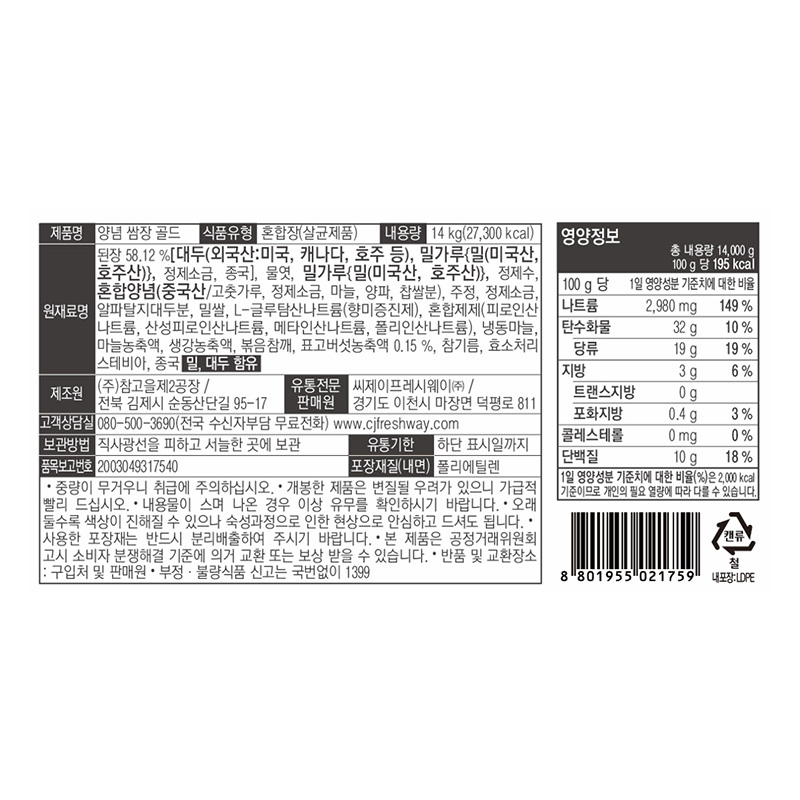 프레시원 양념쌈장(골드 14Kg/EA) 이미지
