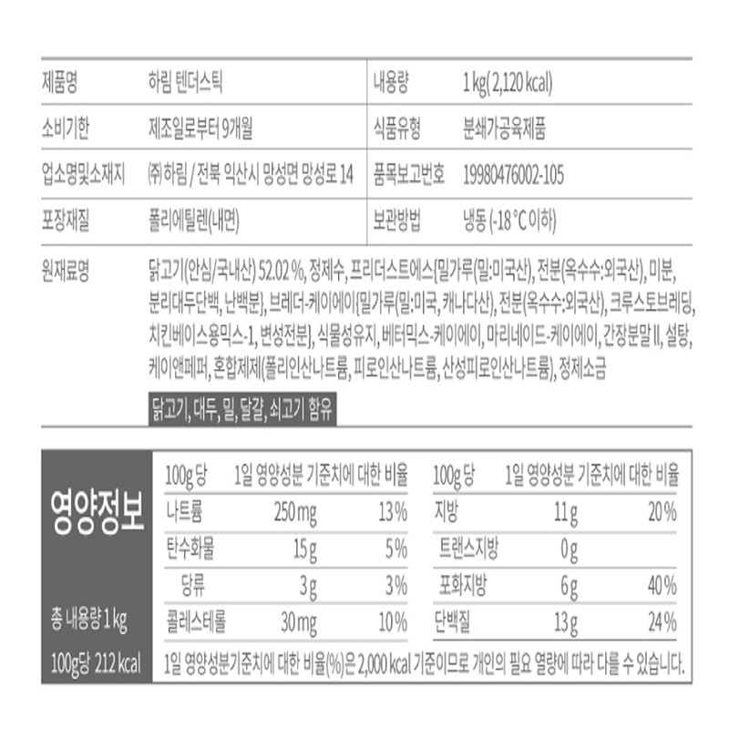 하림 텐더스틱(NEW_50g*(20±3)입 1Kg/EA)