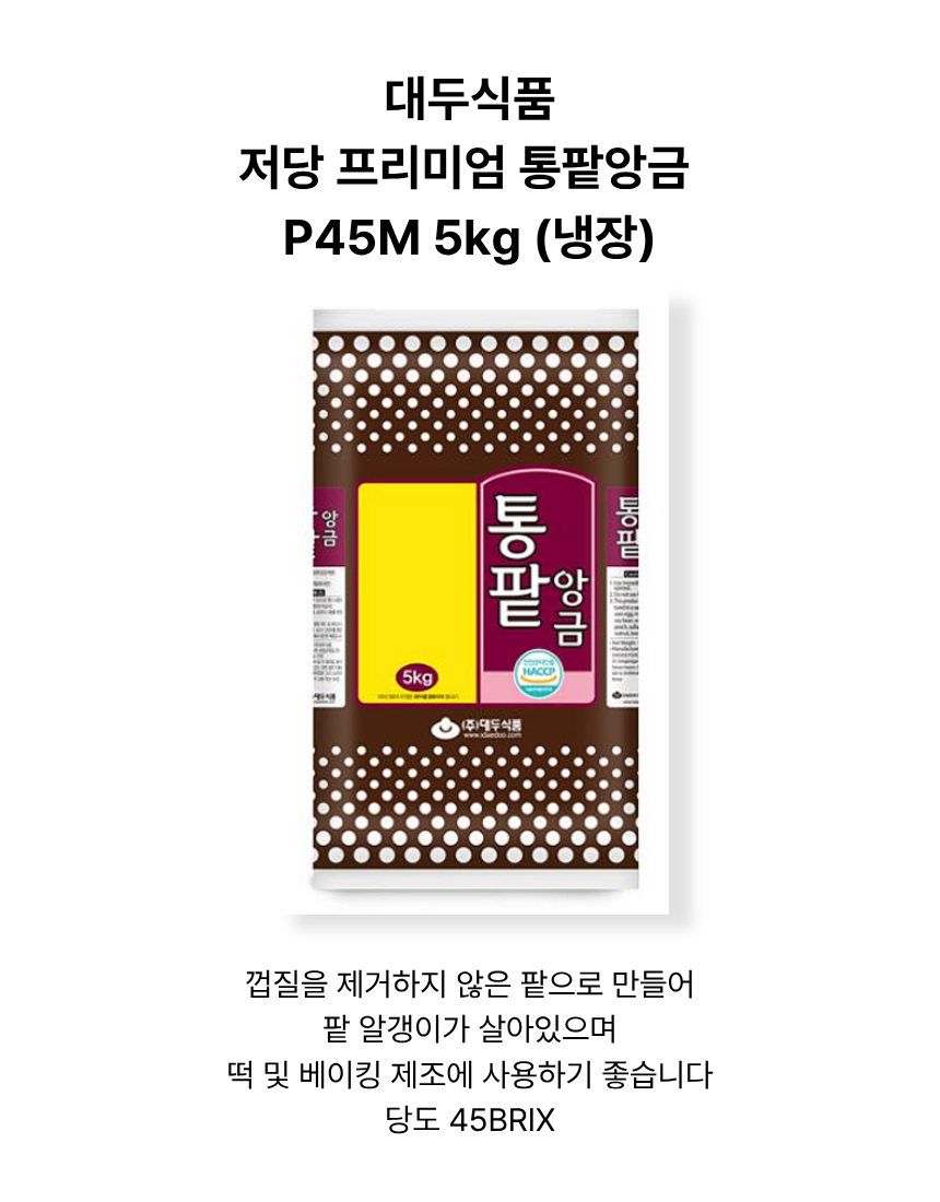 ![[D-2배송] 대두식품 저당통팥앙금 P45M 5kg 이미지](https://content.foodspring.co.kr/vendor/2711/images/28_7756991230_r.png?f=webp&s=876x876&t=inside)
