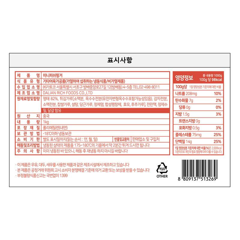 가토코 미니피쉬핑거(생선스틱_10±2g*80±3입 1Kg/EA)