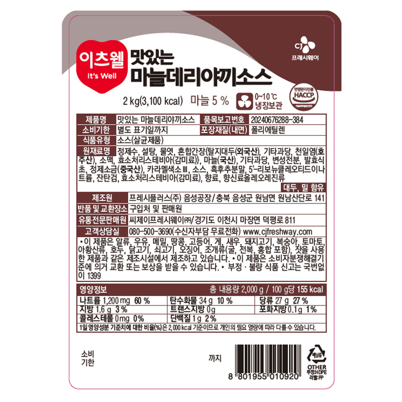 이츠웰 마늘데리야끼소스(리뉴얼 2Kg/EA)