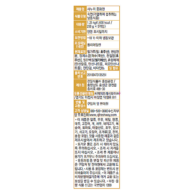 이츠웰 사누끼중화면(리뉴얼_250g*5입 1.25Kg/EA) 이미지