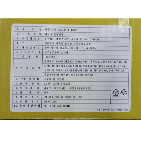 ★2월 첫구매★ 임금님 맛김치 10kg 중국산 수입 썰은/한입 김치 이미지