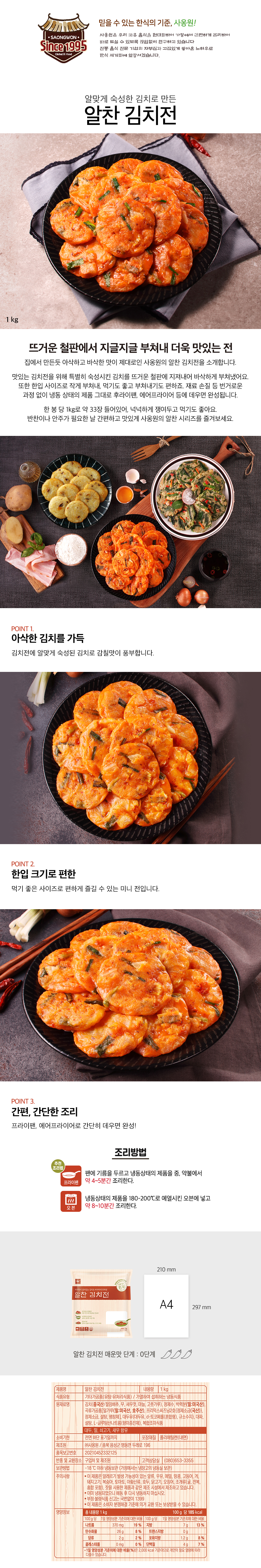 사옹원 알찬 김치전 1kg 냉동