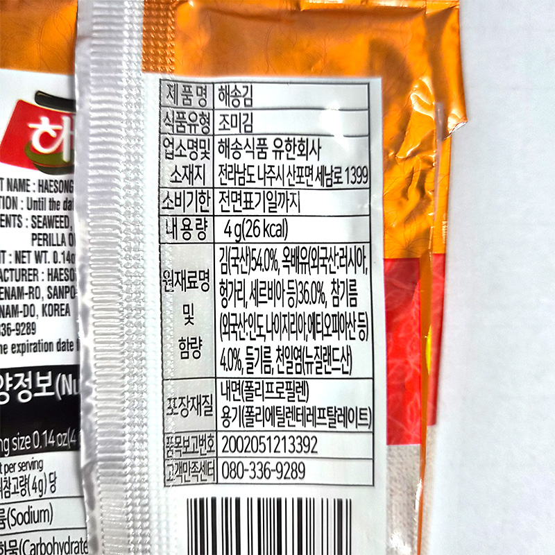 해송 도시락김(9절8매_16봉입 64g/EA)