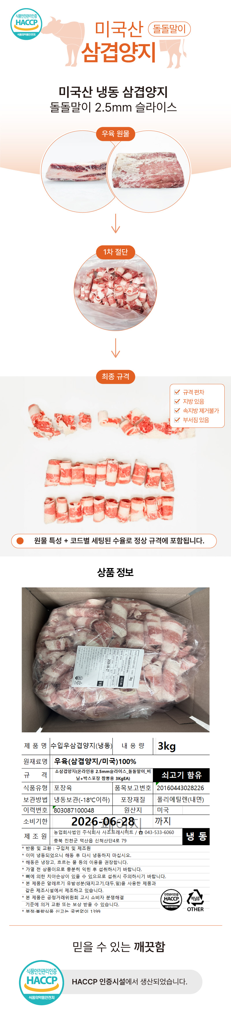 ♥kg당 10,590원♥ 삼겹양지(미국산 냉동 2.5mm 돌돌말이 3kg/EA) 짬뽕용 중식