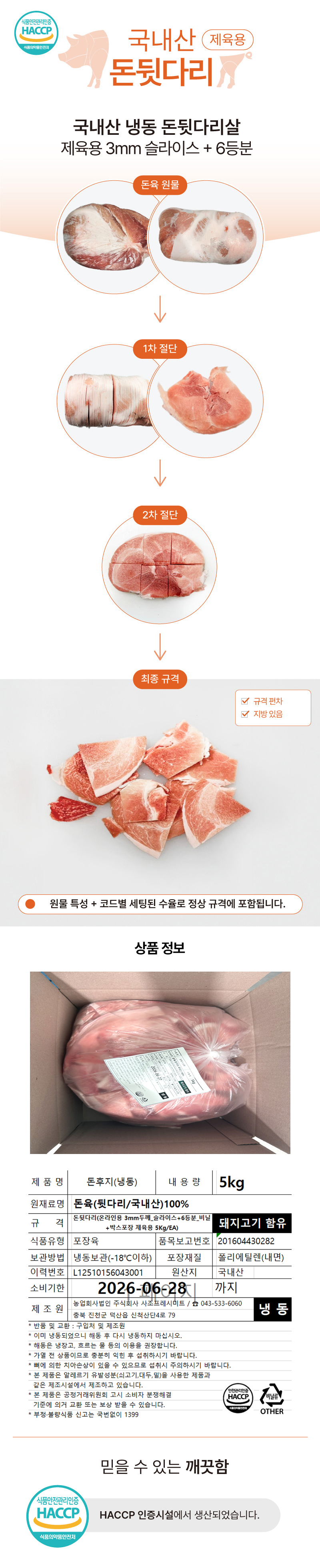 ♥kg당 6,700원♥ 국내산 돈뒷다리살(제육용 냉동 후지 3mm 6~9등분 5kg/EA) 제육 두루치기 이미지