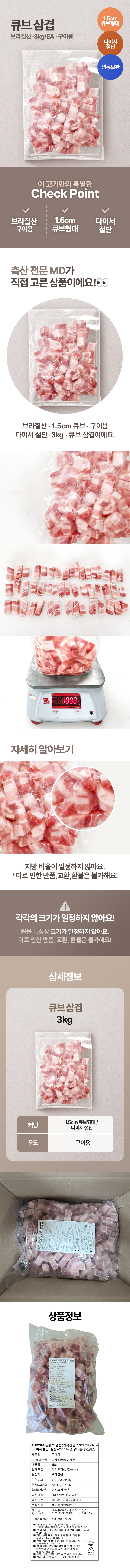♥kg당 12,075원♥ AURORA 큐브 삼겹(냉동 1.5cm 다이서 절단 3kg/EA) 찌개볶음용