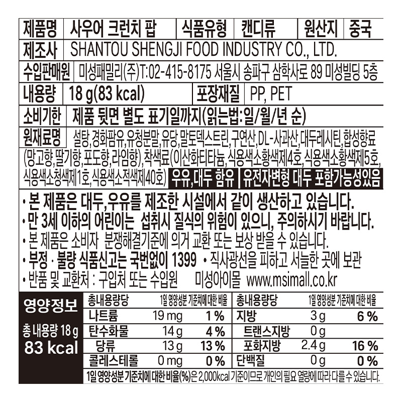 미성패밀리 사우어크런치팝(캔디_18G*12개입 216g/EA) 이미지