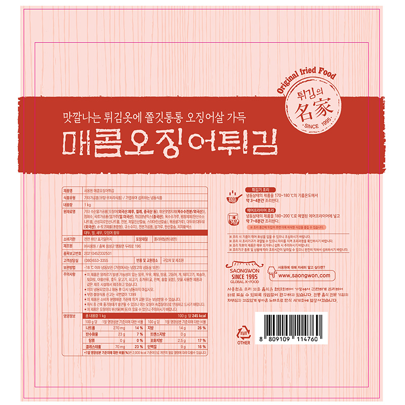 사옹원 매콤오징어튀김(NEW_41±2g*24±2입 1Kg/EA)