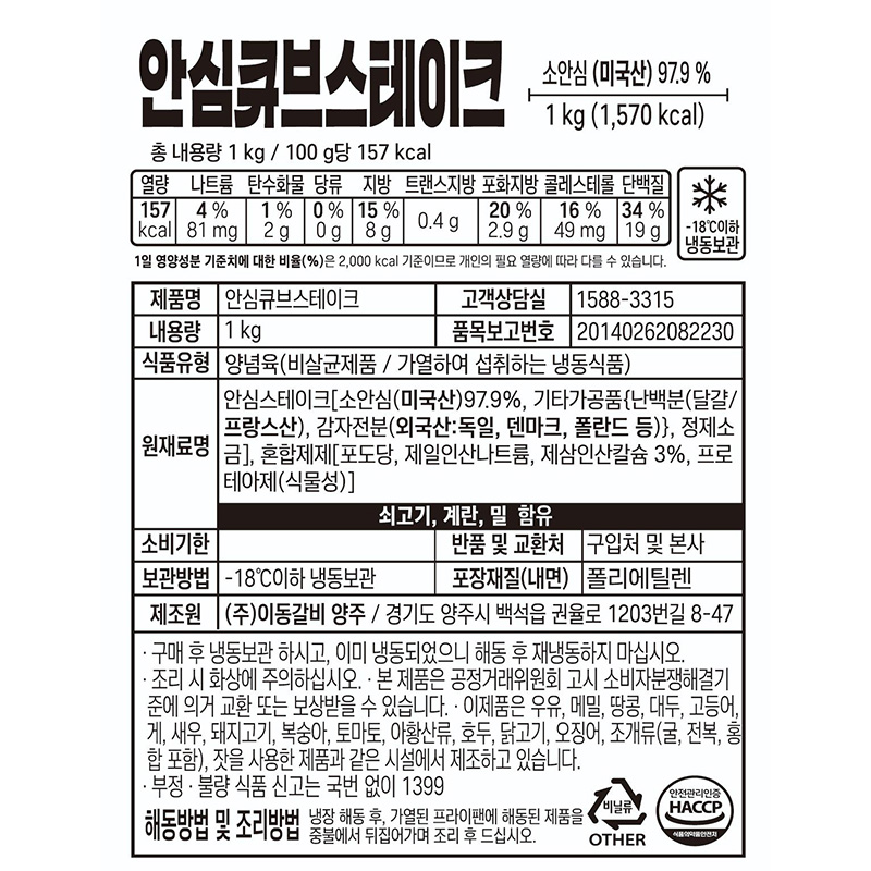 소안심큐브스테이크(CH 1Kg/EA)