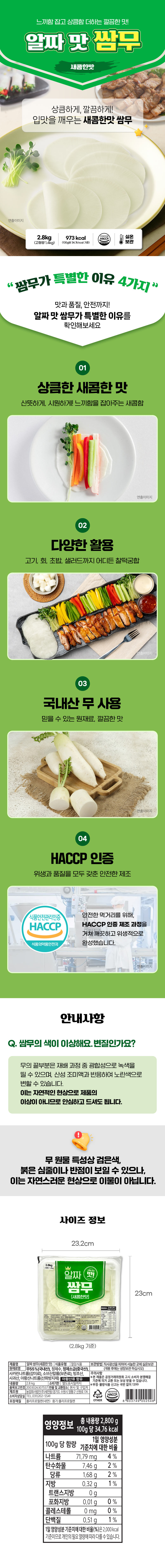 ★초특가★ 알짜 쌈무 흰색 새콤한맛 2.8Kg 대용량 업소용 무쌈