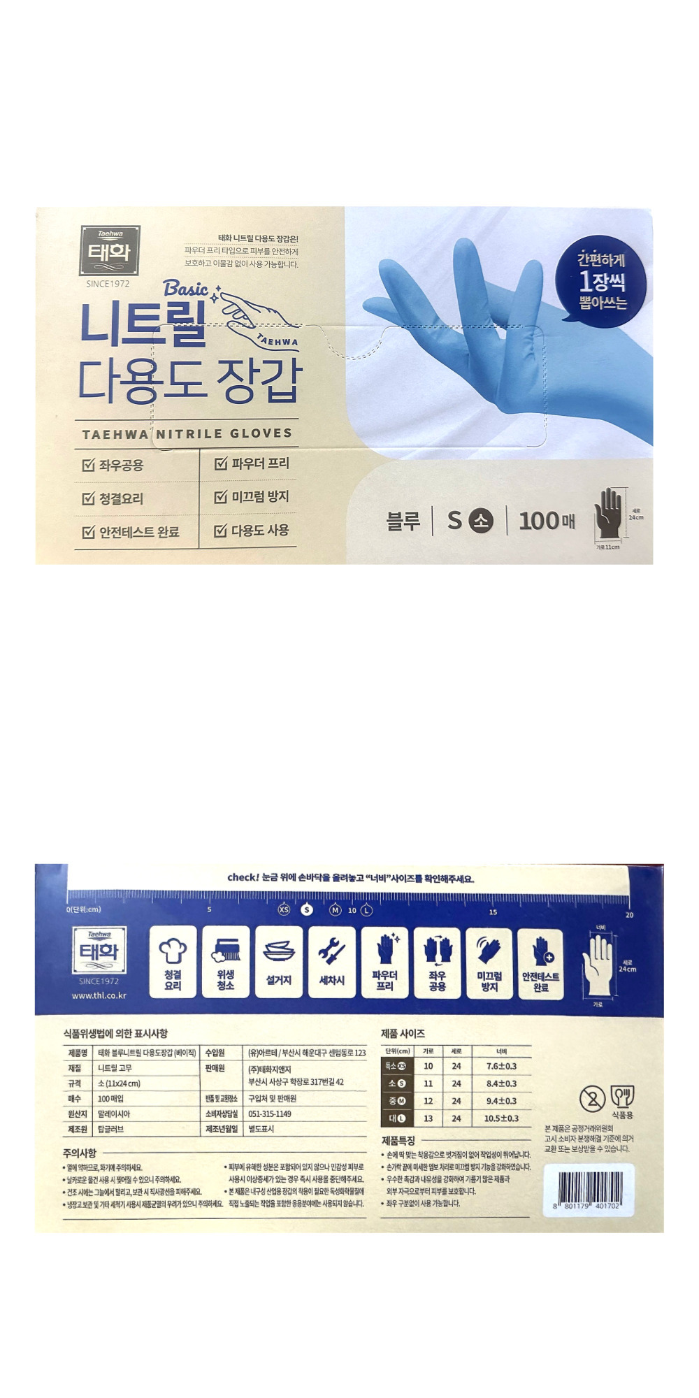 ★한정수량 초특가★ 태화 블루 니트릴 다용도장갑(베이직) 소 (제한)