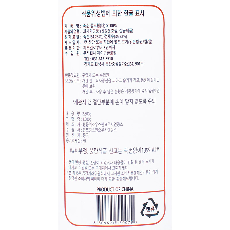 제이쿱 죽순캔(채 2.84Kg/EA) 이미지