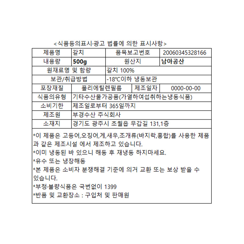 갈치(굿픽_내장제거_70~90g/토막 500g/EA)