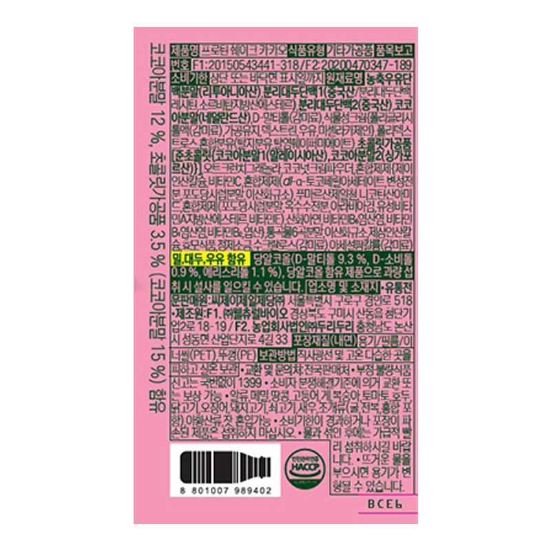 원재료명 및 함량