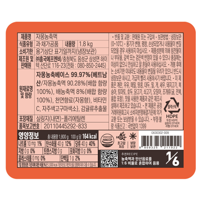 흥국F&B 자몽에이드농축액(1.8Kg/EA)