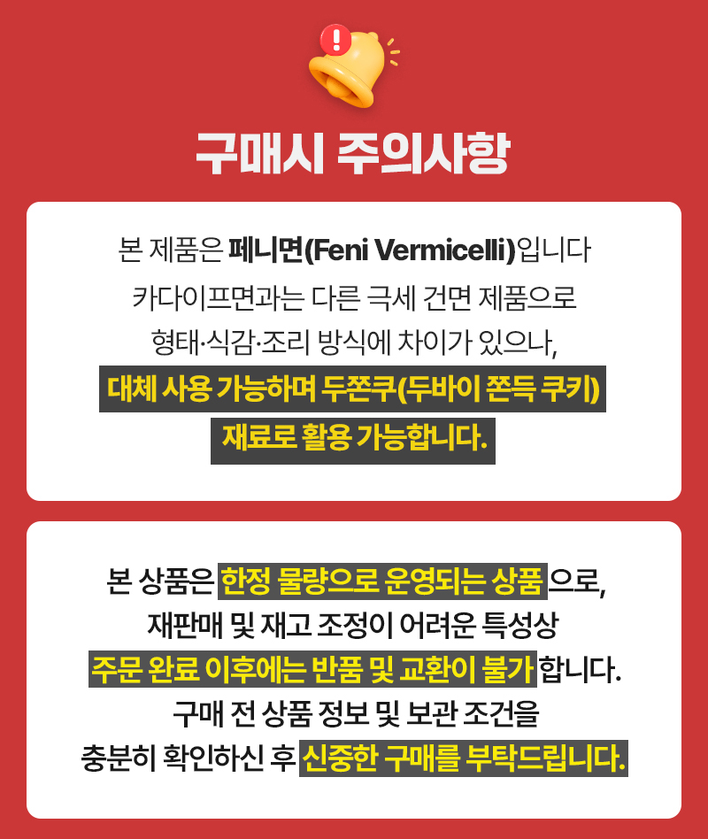 [한정물량/반품불가] 페니면 카다이프 대체면 150g 두쫀쿠 재료가능 두바이 쫀득 쿠키