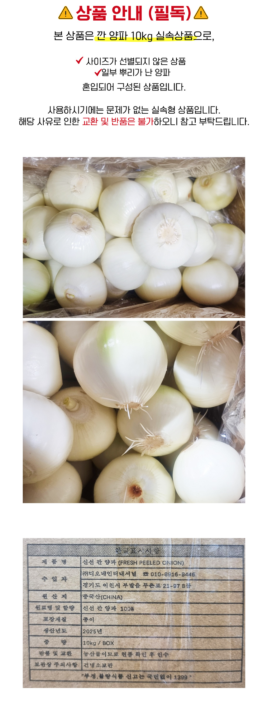 ★한정수량 초특가★깐 양파 10kg(실속,수입산)BOX 이미지