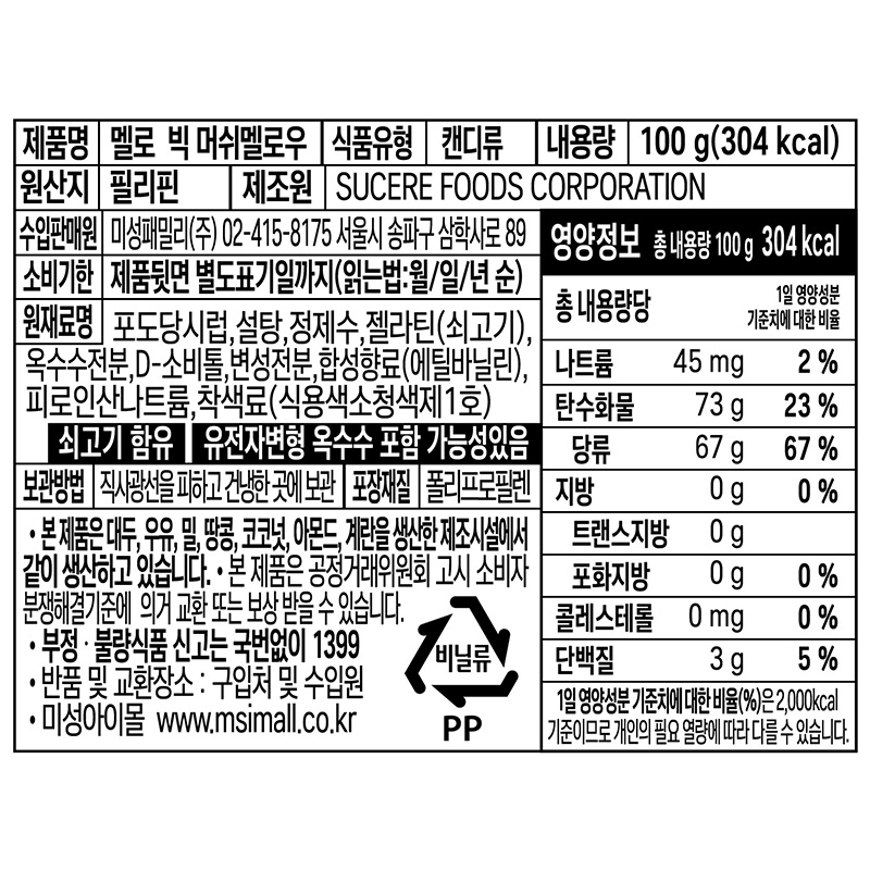 ★초특가★ 미성패밀리 빅머쉬멜로우 마시멜로우(100g*24개입 2.4Kg/BOX) 두쫀쿠 두바이 쫀득 쿠키