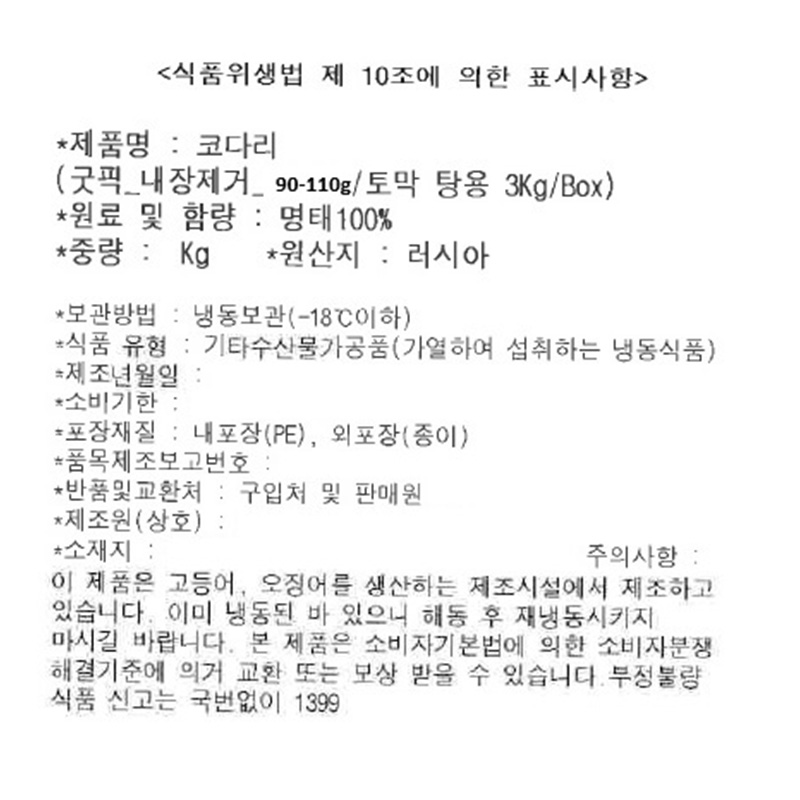코다리(굿픽_내장제거_90~110g/토막 3Kg/BOX)