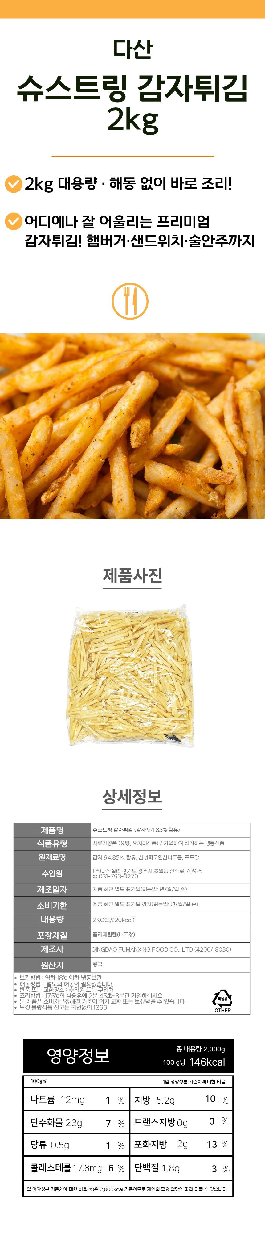 다산 냉동감자 슈스트링 2kg 얇은 감자튀김 이미지