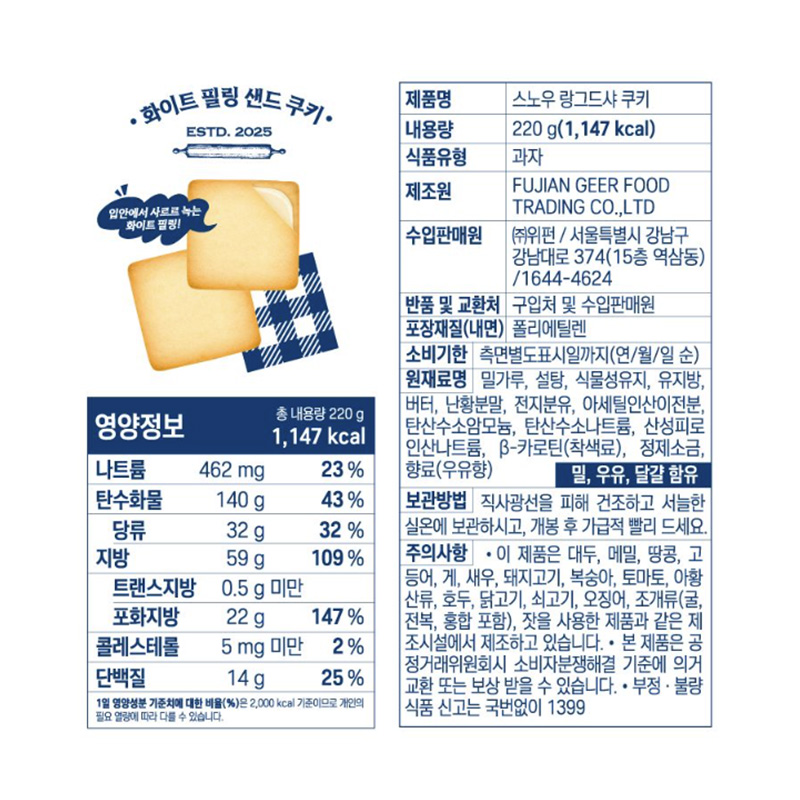 스낵24 랑그드샤쿠키(20개입 220g/EA)